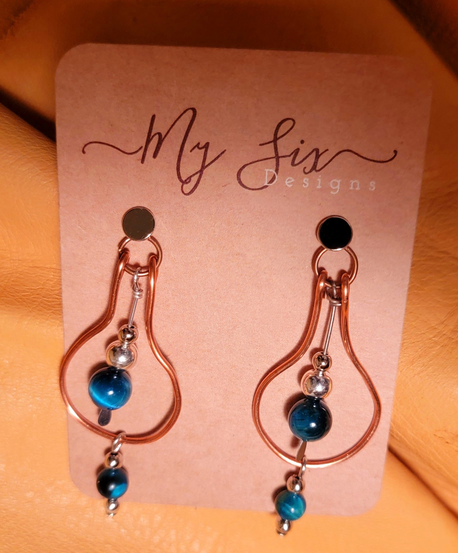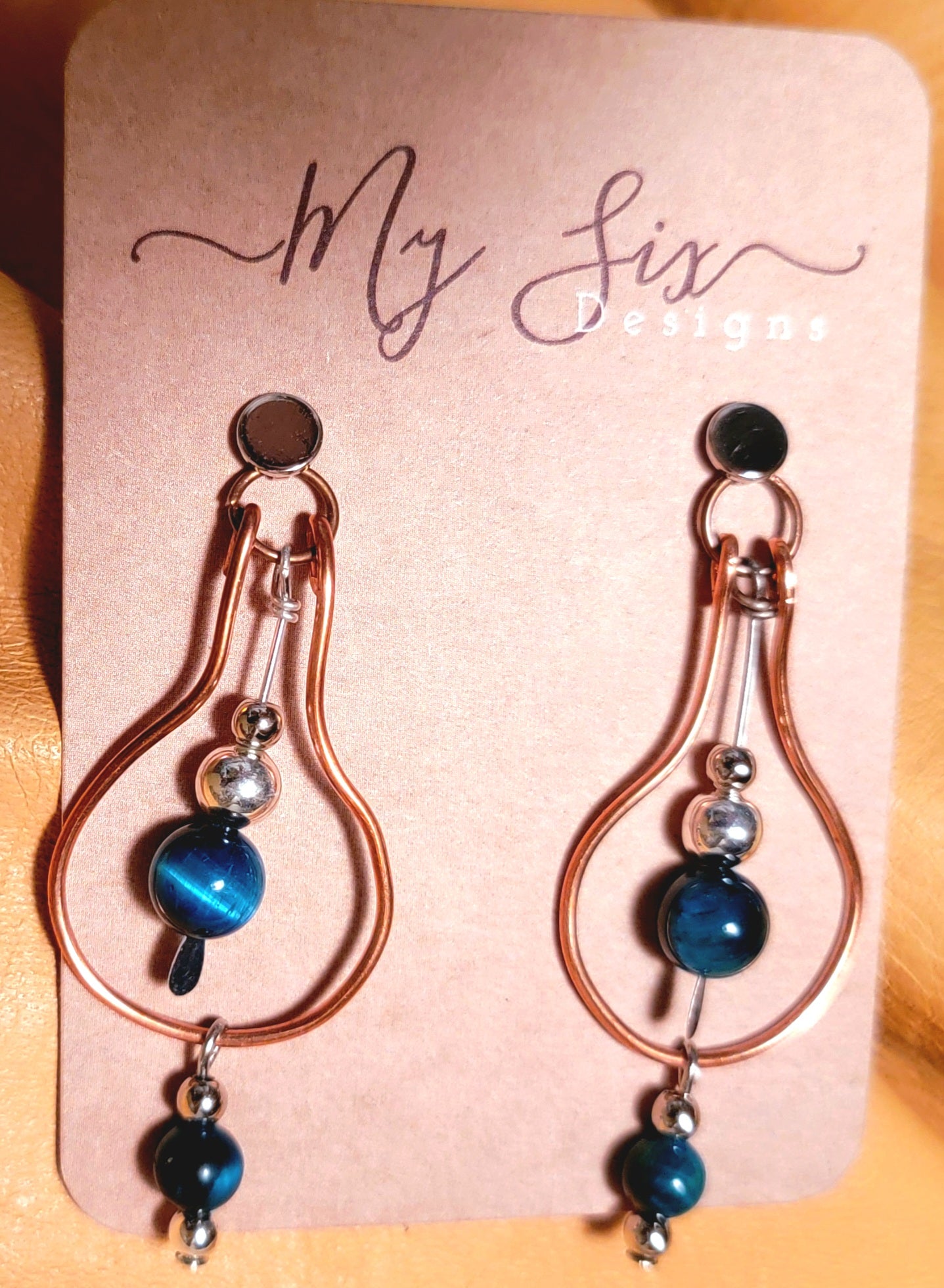 Earrings- Copper and Blue Tigers Eye with Silver Accent