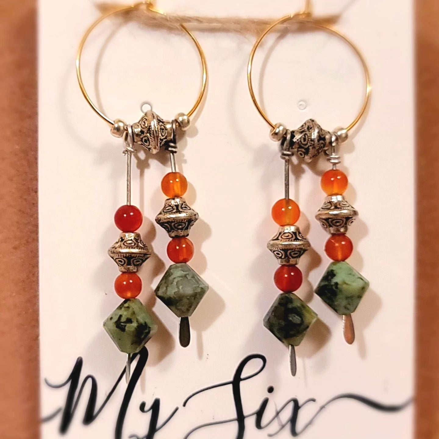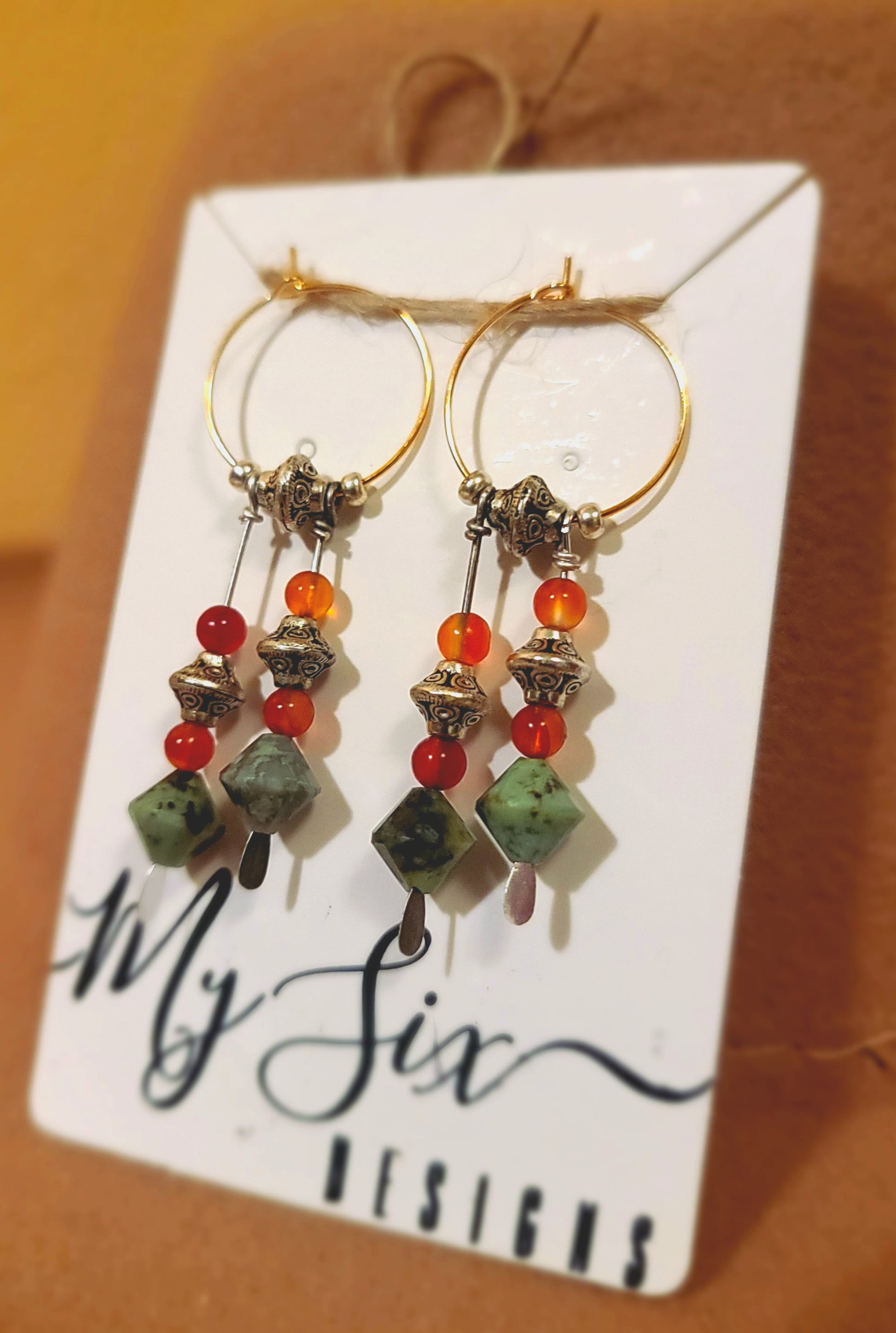 Earrings- Gold Hoops with Assortment of Gemstones and Metals
