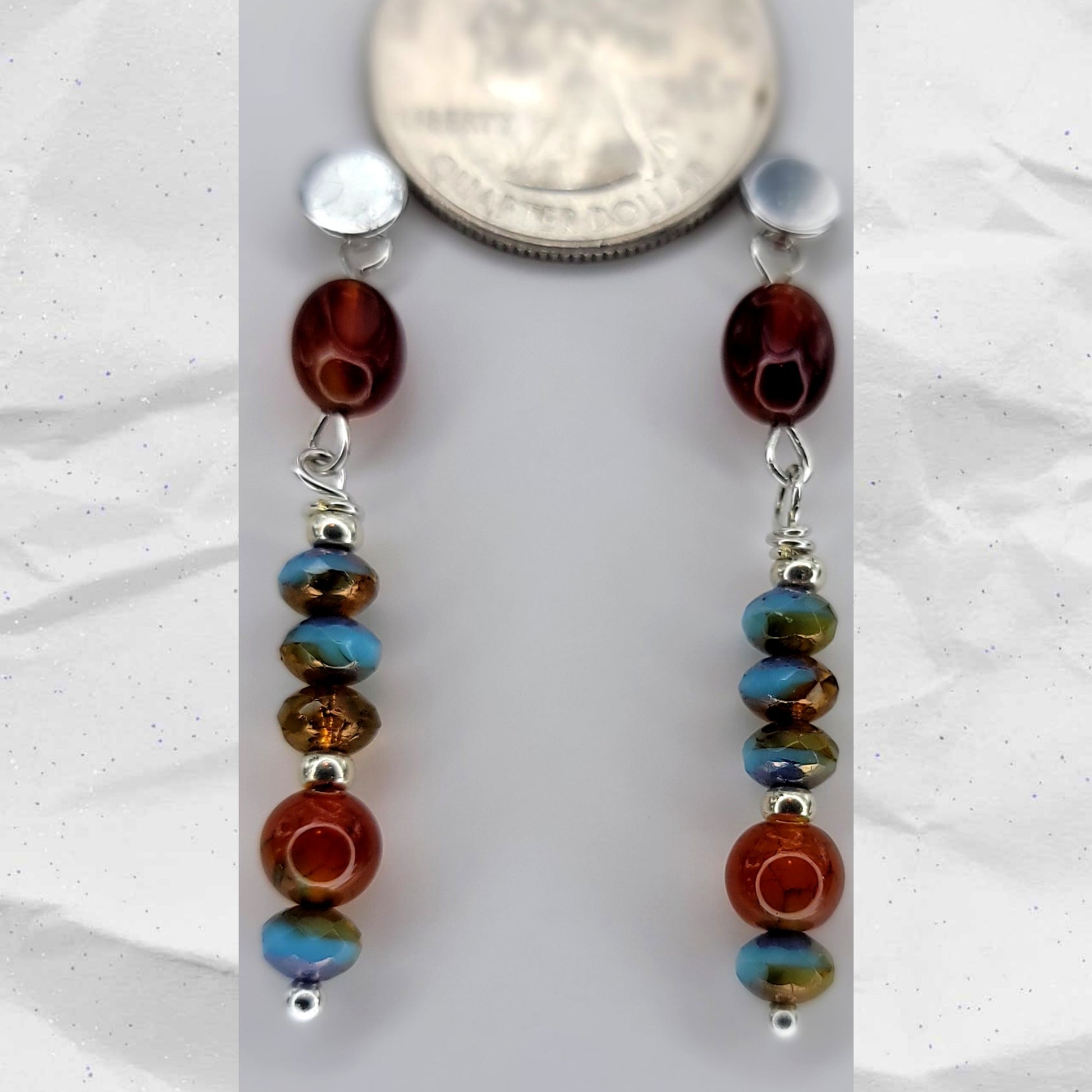 Earrings- Silver Studs with Czech Glass and Silver Accents